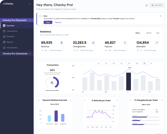 With Checky Pro you can rely on our own PSP platform, Checky Pro Payments, which supports global card schemes and a wide range of local alternative payment methods to help you serve customers in every market. For merchants already working with another provider, integrations with Viva, Airwallex, Stripe and PayPal are available and constantly expanding.