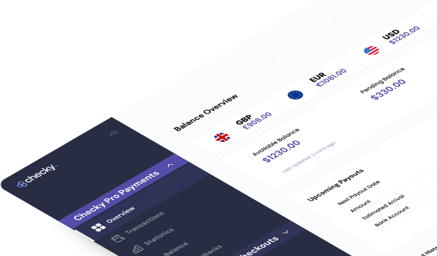 With Checky Pro Payments you gain full control over your cash flow. Accept global cards and local methods, manage multi-currency payouts, and track every transaction in real time. Built for speed, security and scalability, we help you cut costs, protect revenue and grow your business.